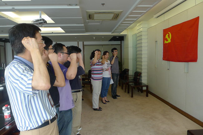 “七一”前夕,集团第二党支部召开党员大会,会上阮周军、卢思淳二位预备党员在鲜红的党旗下庄严宣誓,其它党员也举起右手和二位新党员重温了入党誓言。