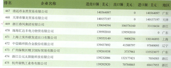 2010中国民营外贸500强企业,春风集团榜上有名!