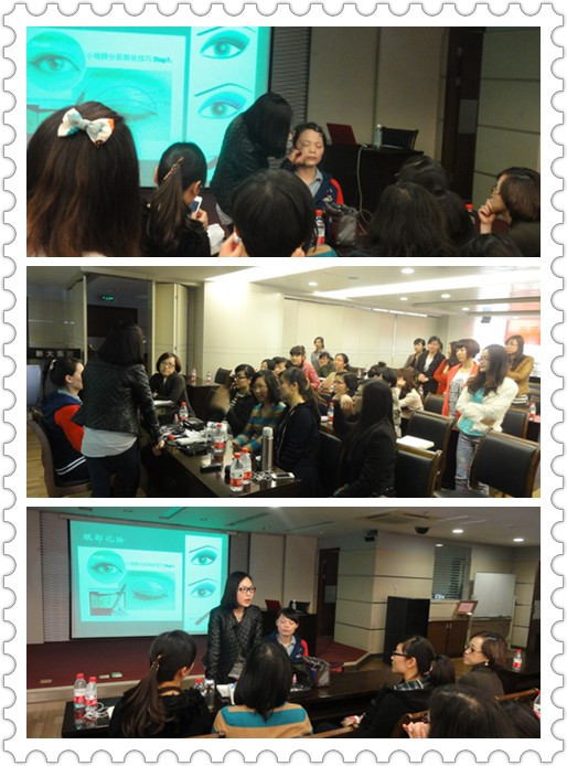 所有学员都听得很投入,看的很认真,记的很仔细。讲座结束后仍有很多学员将秦老师团团围住,询问与切身相关的日常护肤、彩妆问题,而老师也很耐心的与大家一一分享,并留下了自己的联系方式,以方便大家日后的交流。