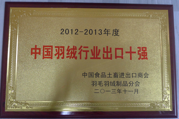 2013中国(六安)国际羽绒博览会于11月8日在安徽六安金太阳国际会展中心隆重开幕。会上,我集团荣获2012-2013年度中国羽绒行业出口十强荣誉称号,集团下属华兴羽绒公司羽毛部经理余建伟荣获中国羽绒行业杰出贡献者荣誉称号。集团姜益民董事长作为中国食品土畜进出口商会羽毛羽绒分会理事长主持召开了羽绒行业年会。博览会期间,姜益民董事长还前往叶集镇考察了华兴羽绒公司意向办厂地块,并与当地镇府进行了协商。