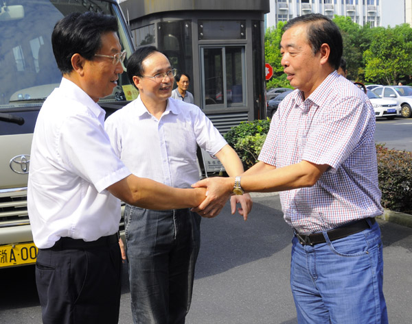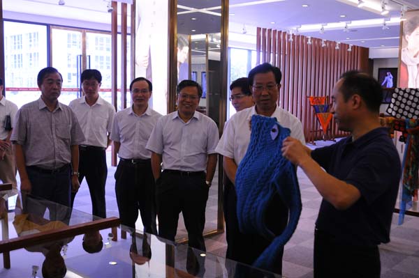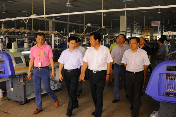 93日下午,浙江省委副书记、政法委书记王辉忠一行在省供销社主任马柏伟陪同下视察了春风集团工业基地。集团董事长姜益民、副董事长朱中兴向王辉忠介绍了新大集团、春风集团的改革发展历程。王辉忠一行重点视察了春风织造有限公司生产车间和春风纺织集团羊绒世家工厂店,对我们生产企业实施技术改造提高设备自动化程度、实现“机器换人”以解决劳动力紧缺问题等举措给予了充分肯定,对羊绒世家工厂店以外销带动内销,在产品设计、产品质量和档次上领先于同行业水平表示了赞赏。