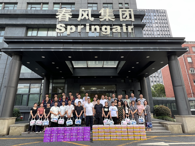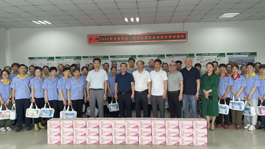 高温酷暑,热浪滚滚,正值新大集团外贸出货高峰和工程交付的关键时点,集团一线员工依然坚守岗位、奋战高温。为感谢一线员工的辛勤付出,传递集团的关爱,同时结合主题教育活动,集团党委和工会在8月期间开展“夏季送清凉”慰问调研活动。集团领导深入基层一线,先后前往临安、桐庐、安徽、海盐、湖州、萧山、滨江等地的24家生产基地和房产项目现场,看望、慰问奋战在高温下的一线生产工人及服务保障人员近1500人,送去了洗发水、沐浴露、毛巾、饮料、养生粥等“清凉”大礼包。