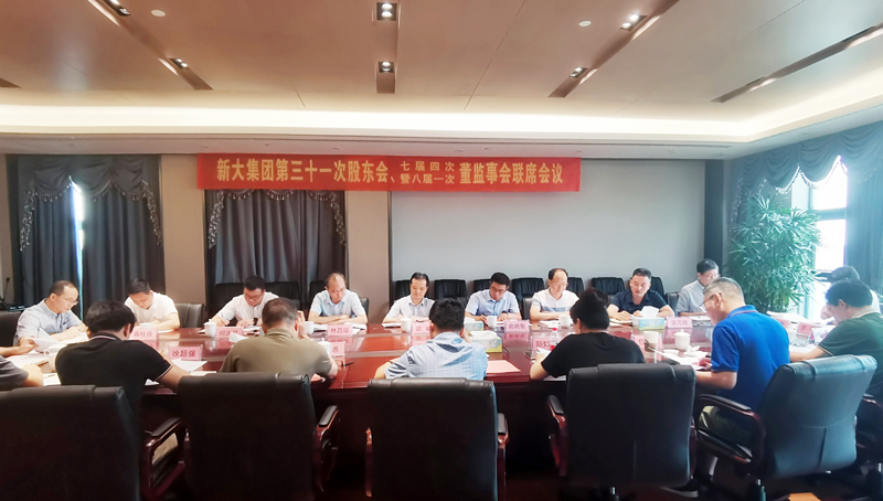 7月10日,浙江新大集团第三十一次股东会、七届四次暨八届一次董监事会联席会议在公司三十楼会议室召开。省供销社理事会副主任郭峻、省兴合集团党委副书记俞晓东出席会议。会议由公司领导张汝和和林昌斌分别主持,公司法人股东代表、董事、监事参加会议,有关职能部室负责人等列席会议。